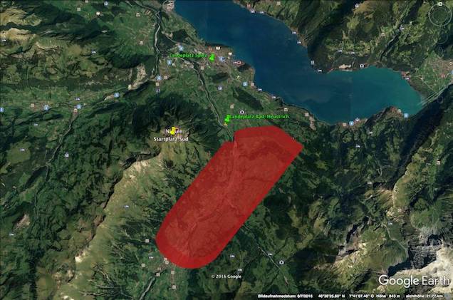 - Längs der Landepiste sind neu jeweils nur 1.5km Distanz einzuhalten (anstatt der 5km nach Segelflugkarte).