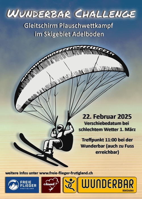 Der Wunderbar-Challenge ist ein Plausch-Gleitschirm-Event und wird von der Wunderbar Schneebar im Silleren/Hahnenmoos Skigebiet organisiert. Der Start mit dem Gleitschirm ist am Laveygrat und die Landung neben der Wunderbar. Touch and Go's beim Katzenhubel und möglichst genaue Landungen geben Punkte.